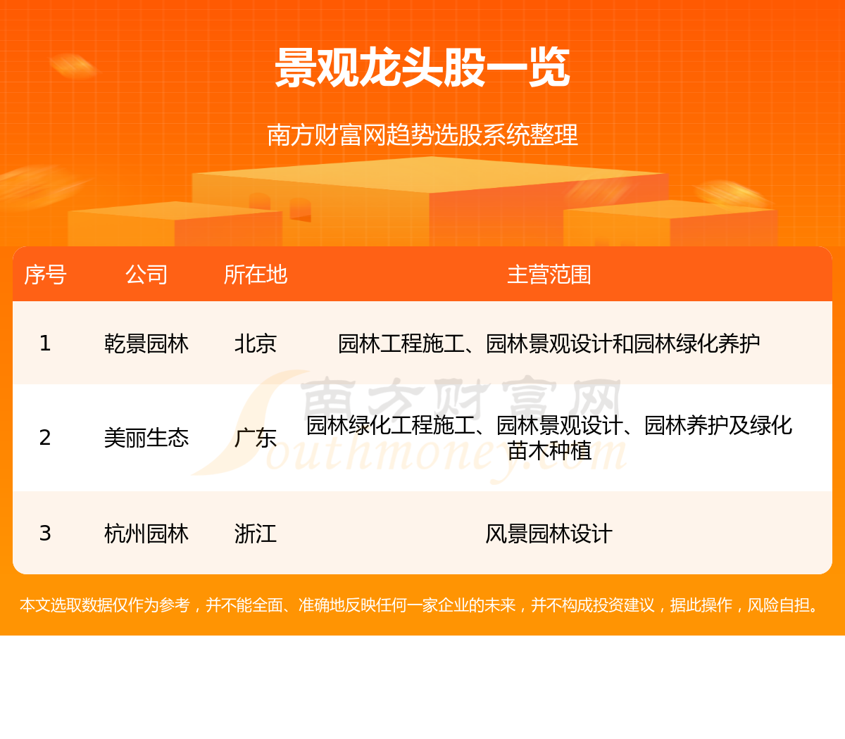 一、景观龙头股一览