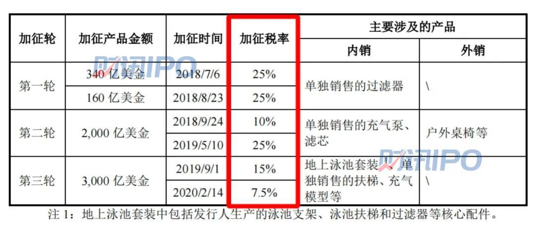 招股书显示,公司产品受到的贸易政策影响主要为美国发布的多轮301关税加征清单,相关产品加征的税率从7.5%到25%不等。