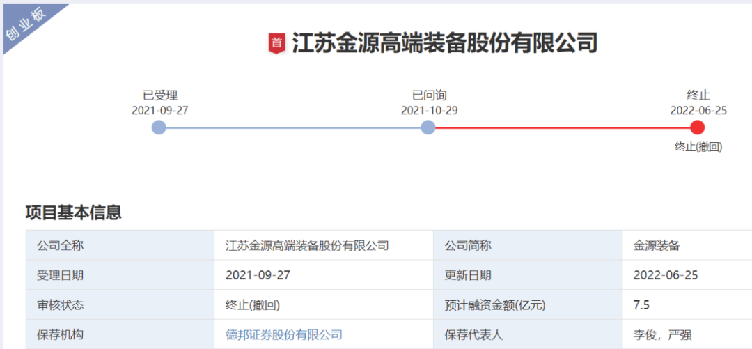 2021年9月27日,公司再次申报创业板IPO获得受理,本次保荐机构变更为德邦证券,拟募资7.5亿元。2022年6月完成了两轮问询回复。2022年6月20日,公司及保荐机构撤回申报/保荐,而于6月25日被深交所宣布终止审核。