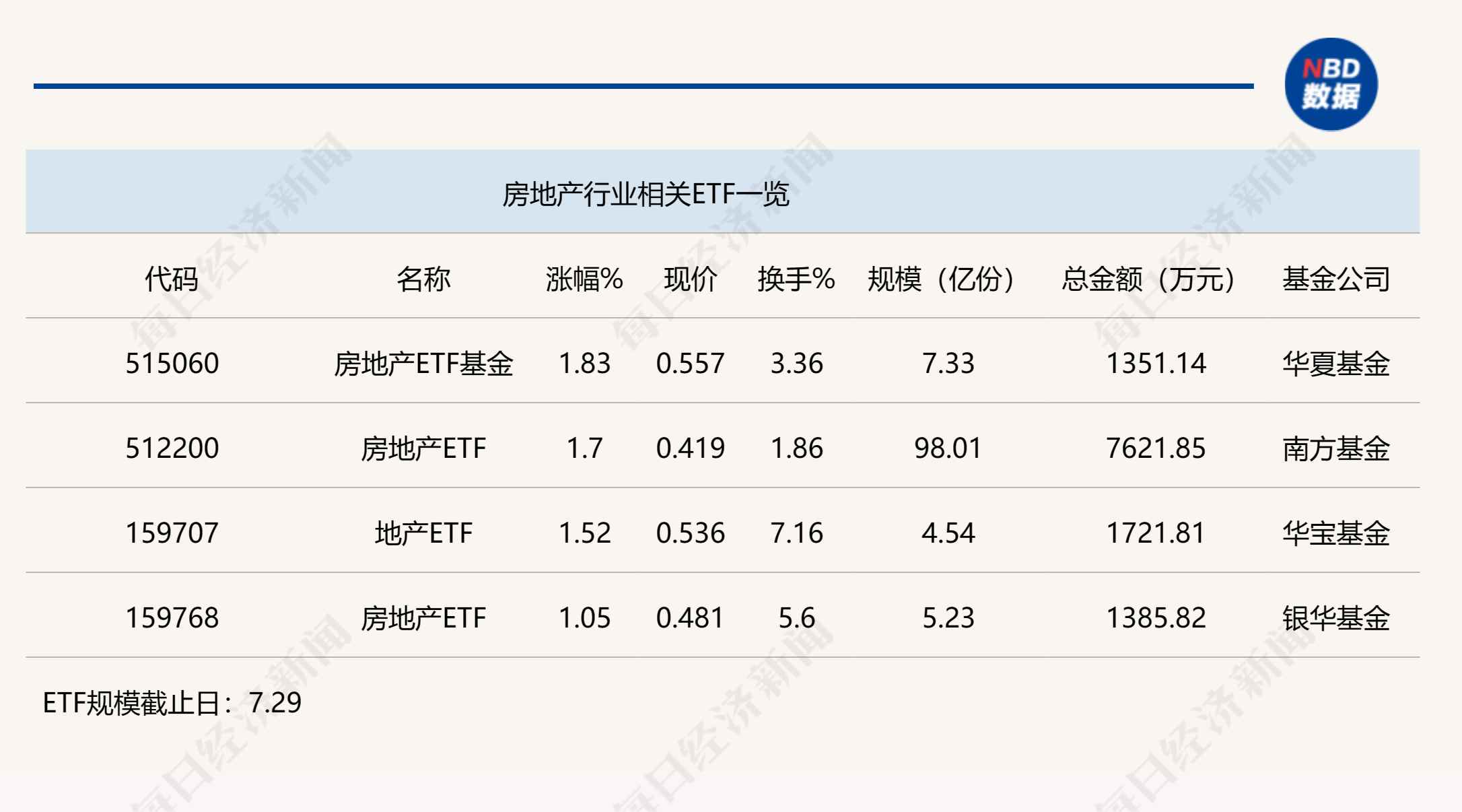 点评:地产ETF(159707)半日涨幅为1.52%,其规模为4.54亿份,半日成交金额为1722万元,该ETF追踪的是中证800地产指数。