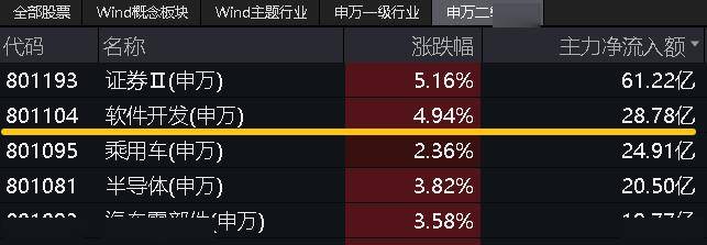 资金面上,软件开发行业获主力资金净买入28.78亿元,跻身全部申万二级行业TOP2!
