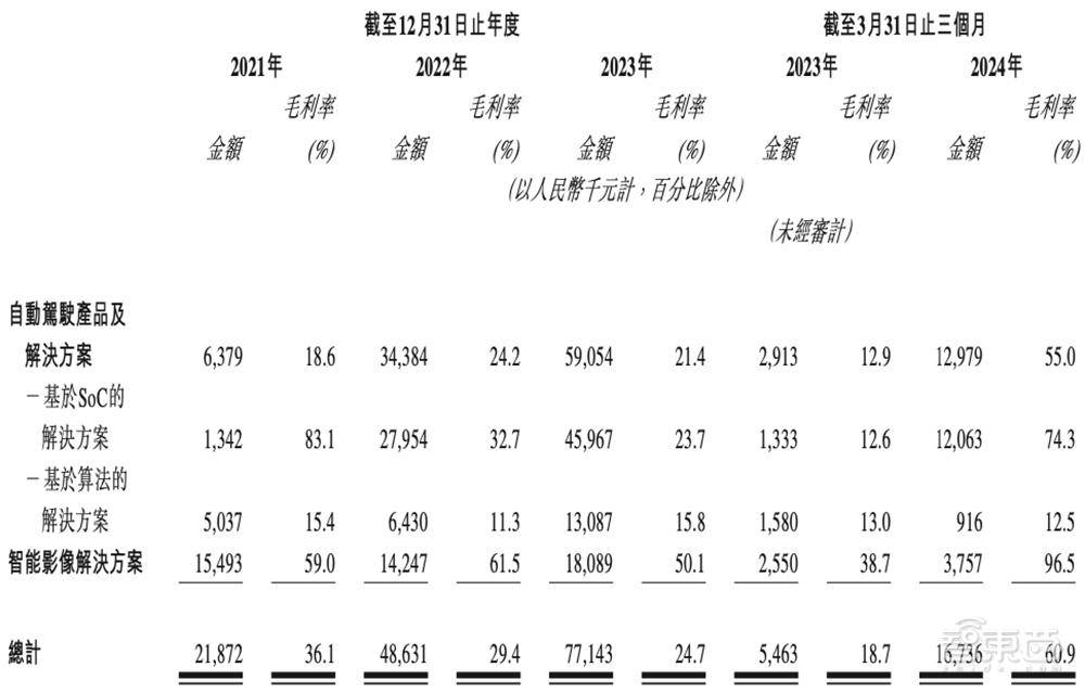 其收入按自动驾驶产品及解决方案、智能影像解决方案来划分,前者近两年贡献的收入占比超过85%。