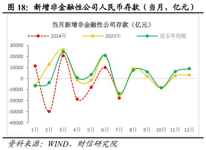 四是金融行业主动“挤水分”持续对M2形成一定拖累。受规范“手工补息”导致企业减少“低贷高存”资金套利行为等的影响,1-7月份企业新增存款累计同比多减少6.7万亿元,连续6个月同比少增(见图18),持续对当前和年内未来几个月M2同比增速形成拖累;同时优化金融业增加值核算,也会导致地方督导银行增加存贷款、过度追求规模的动力下降,对金融机构存款形成一定下拉作用。据测算,叫停手工补息影响存款规模大约20万亿元,占银行存款余额的10%左右,其对年内M2增速的影响不容小觑。