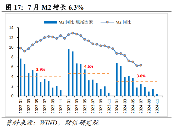 7月末M2同比增长6.3%,较上月提高0.1个百分点(见图17),低位企稳,原因主要有五。