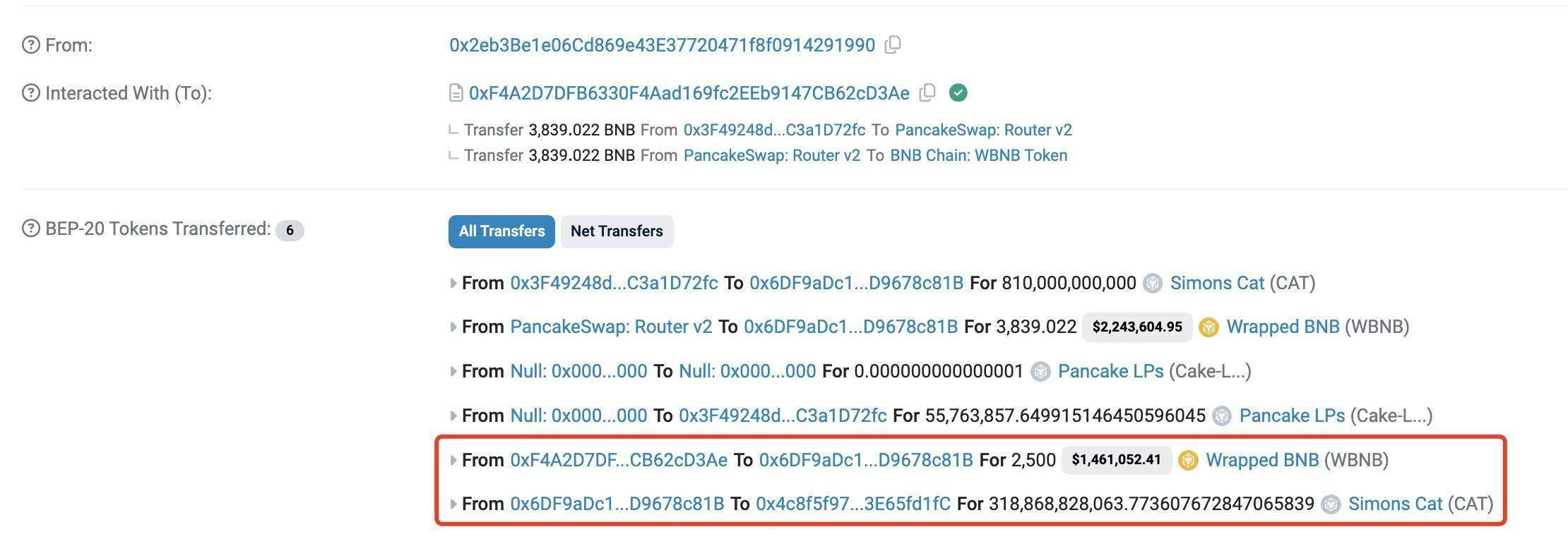 一名狙击手在短短 5 小时内,通过狙击 $CAT 赚取了 300 万美元!他花费了 2500 枚 $BNB(约 146 万美元)在流动性添加时购买了 3188.7 亿枚 $CAT。随后,他将这 3188.7 亿枚 $CAT 全部卖出,获得约 7639 枚 $BNB(约 445 万美元),净赚 5139 枚 $BNB(约 300 万美元)。