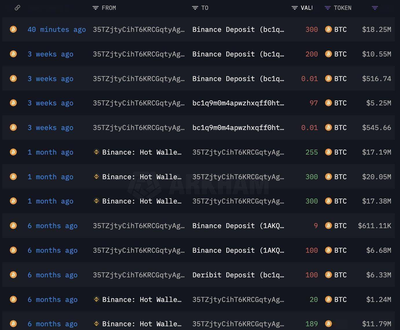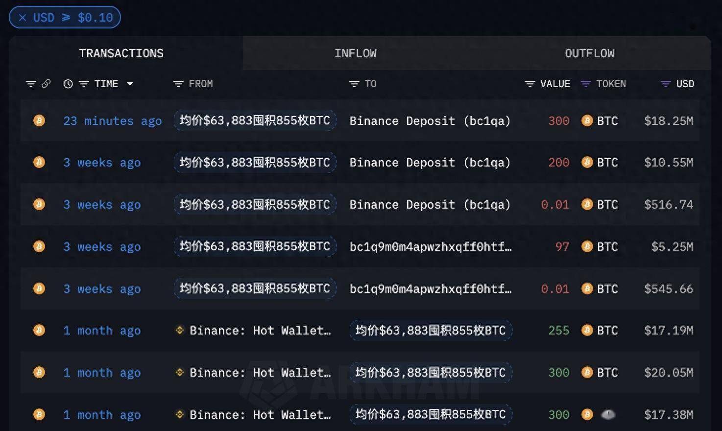 巨鲸40分钟前亏损抛售 300 枚 $BTC,累计损失达 480 万美元