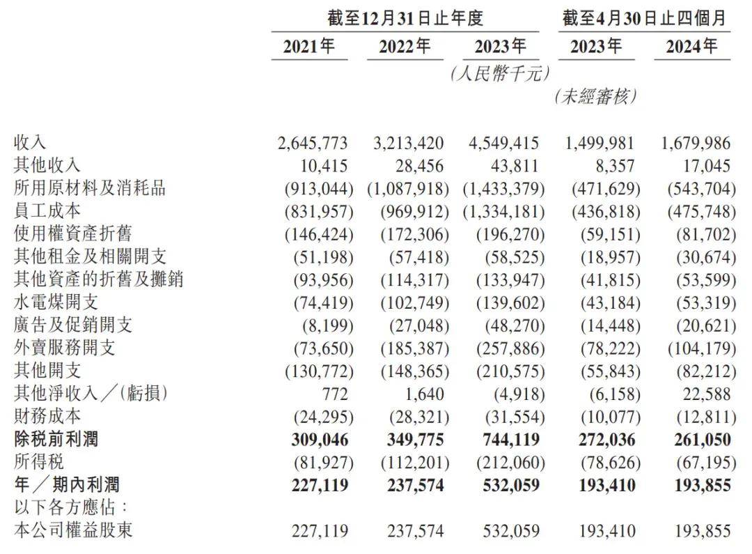 招股书显示,小菜园2021年、2022年、2023年营收分别为26.46亿元、32.13亿元、45.49亿元;期内利润分别为2.27亿元、2.38亿元、5.32亿元。小菜园2023年营收较上年同期增长41.6%。