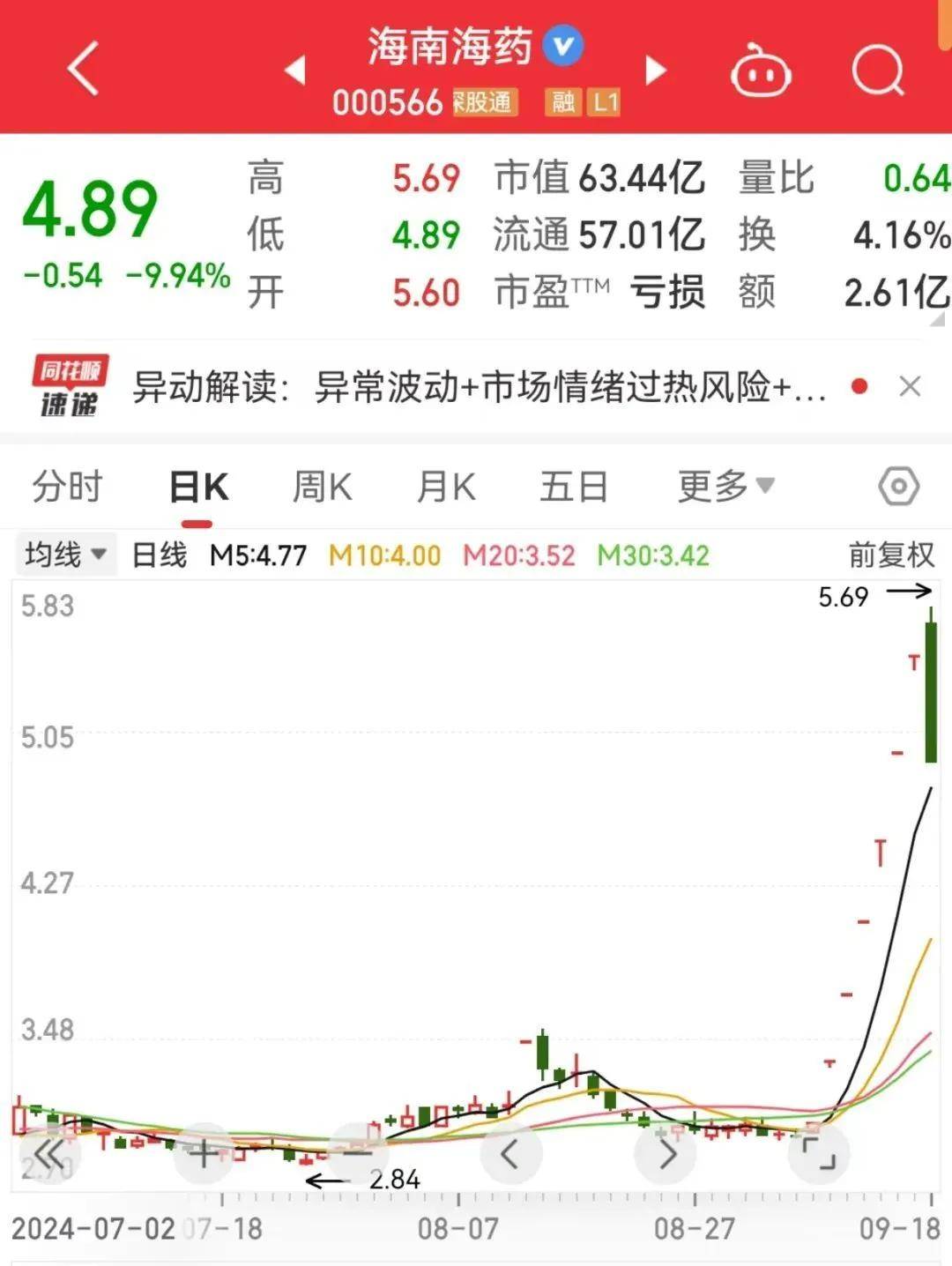 今天早盘,海南海药、华映科技等短期大涨题材股开盘闪崩跌停。 此前,海南海药走出6连板,华映科技走出5连板。 保变电气上演“地天板”行情,此前该股走出3连板行情。