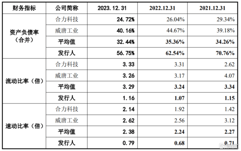 相关偿债能力指标与可比上市公司对比,图片来源:招股书