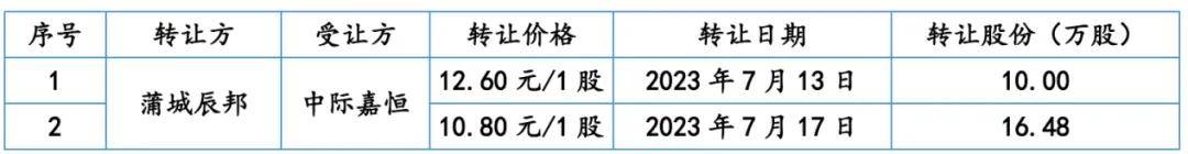 值得关注的是,在这次股权转让中,出现两个转让价格。2023年7月13日,蒲城辰邦以12.60元/股的价格转让10万股;2023年7月17日,转让价格却变为了10.80元/股,转让股份为16.48万股。相隔四天,股权转让价格却下滑了1.8元/股。