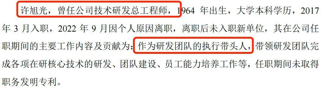 科隆新材共有三名核心技术人员。2022年9月,科隆新材核心技术人员许旭光因个人原因离职。许旭光曾在科隆新材任技术研发总工程师,且是研发团队的执行带头人。