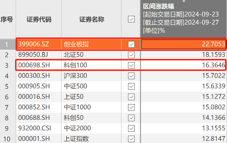 在上周这波大涨中,创业板指、科创100指数充当了“反弹急先锋”,尤其是创业板指,一周涨超22%。
