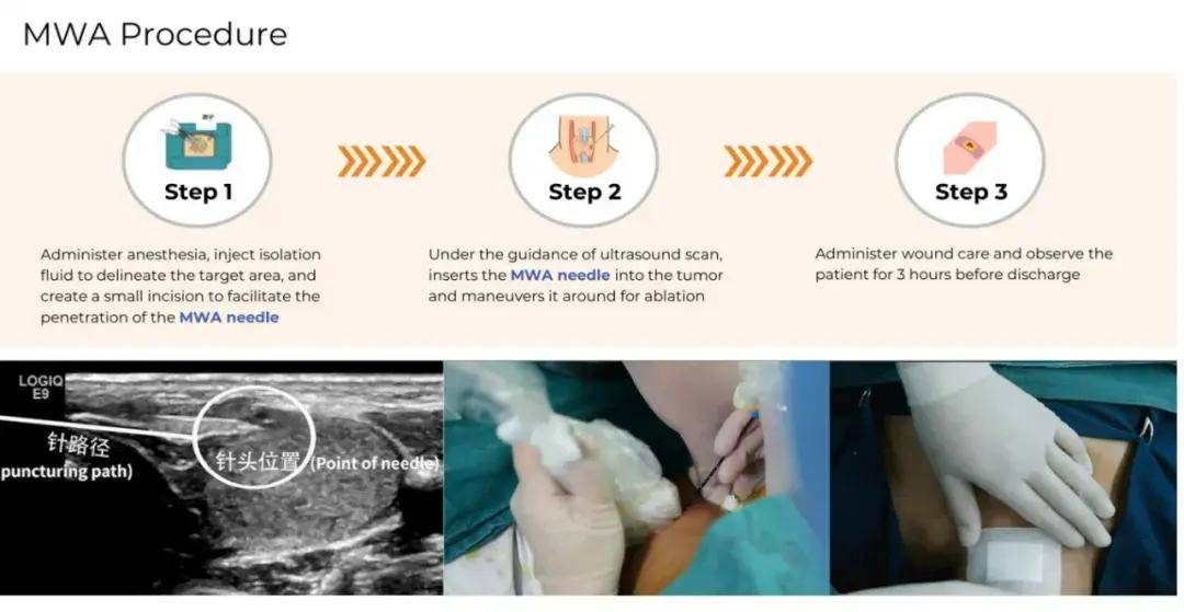微波消融是一种透过微波能热量破坏细胞及组织的技术。在B超、CT等医学影像设备的引导下,透过腹腔镜孔或开放切口将肿瘤暴露,然后将微波消融针插入肿瘤内。微波消融治疗仪释放的微波加热通常在10分钟内透过微波消融针消融(破坏)肿瘤组织。