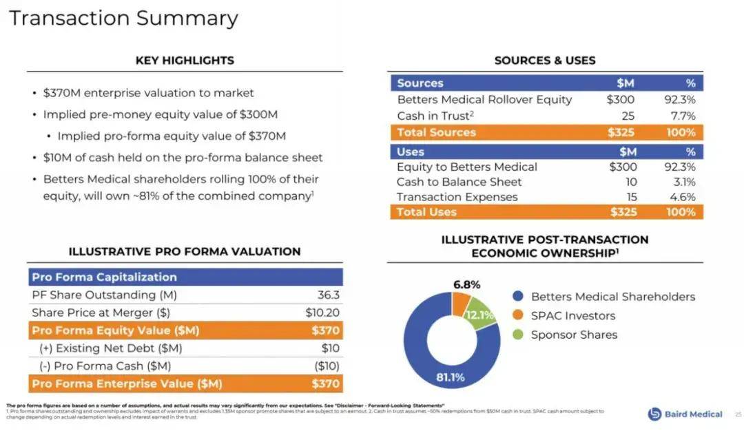 2023年6月26日,百德医疗与特殊目的收购公司ExcelFin Acquisition Corp.(“ExcelFin”)达成最终合并协议。根据合并协议,此次合并前的股权价值在3亿美元,合并后公司的隐含预估企业价值约为3.7亿美元。