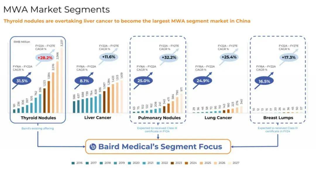 拜尔德医疗的境内运营实体为百德(苏州)医疗有限公司(简称:“百德医疗”)。百德医疗为一家用于肿瘤微创治疗的微波消融医疗器械的开发商及提供商,产品供应及管线产品主要包括微波消融治疗仪及与治疗仪配合使用微波消融针。