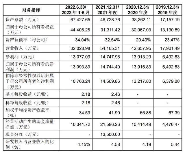 此外,招股书还披露了经过审计的2022年简要财务数据。2022年,公司营业收入、利润总额、净利润分别为6.09亿元、2.39亿元及2.41亿元,较2021年变动幅度分别为12.49%、38.89%及63.44%。