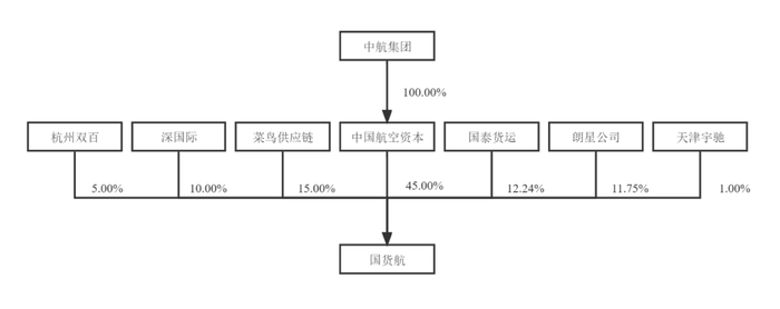 国货航的控股股东是中国航空资本,中国航空资本直接持股45%股权,实际控制人中航集团,中航集团持有中国航空资本100%股权。