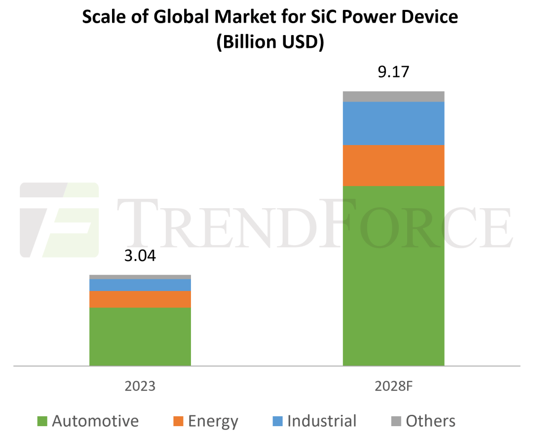 作为热度较高的产业之一,碳化硅市场规模将保持持续增长态势。TrendForce集邦咨询最新《2024全球SiC Power Device市场分析报告》显示,碳化硅在汽车、可再生能源等功率密度和效率极其重要的应用市场中仍然呈现加速渗透之势,未来几年整体市场需求将维持增长态势,预估2028年全球碳化硅功率器件市场规模有望达到91.7亿美元。