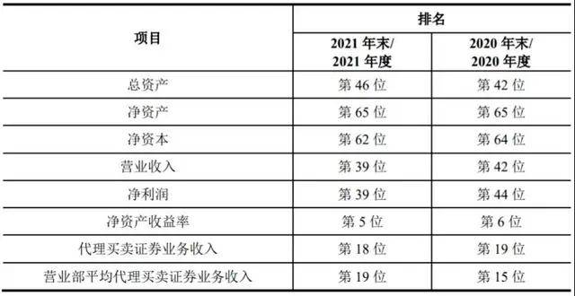 东莞证券招股书显示,2021年按总资产、净资产、净资本排名,东莞证券分别排在第46、65、62位。