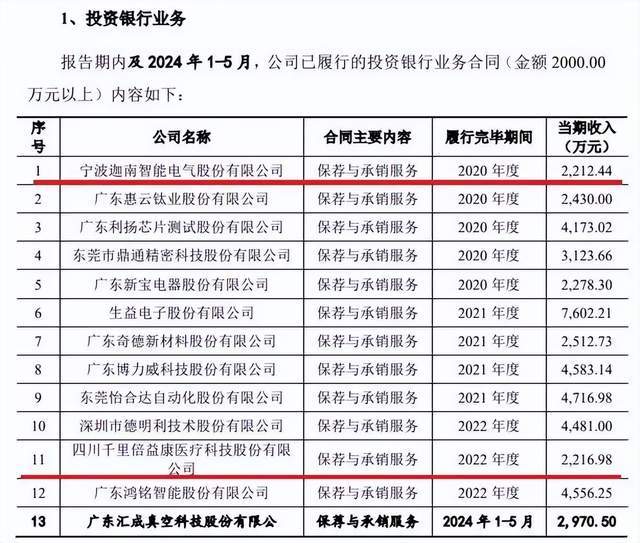 排第三的投行项目也在大幅萎缩,而且东莞证券的投行项目基本就依靠广东本地的企业。今年1-5月,其已履行的2000万以上的13份投行业务合同中,有11单都是广东本地的。