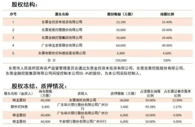 目前,实控人东莞市国资委通过东莞控股、金控集团、金控资本间接控制东莞证券55.4%的股份。