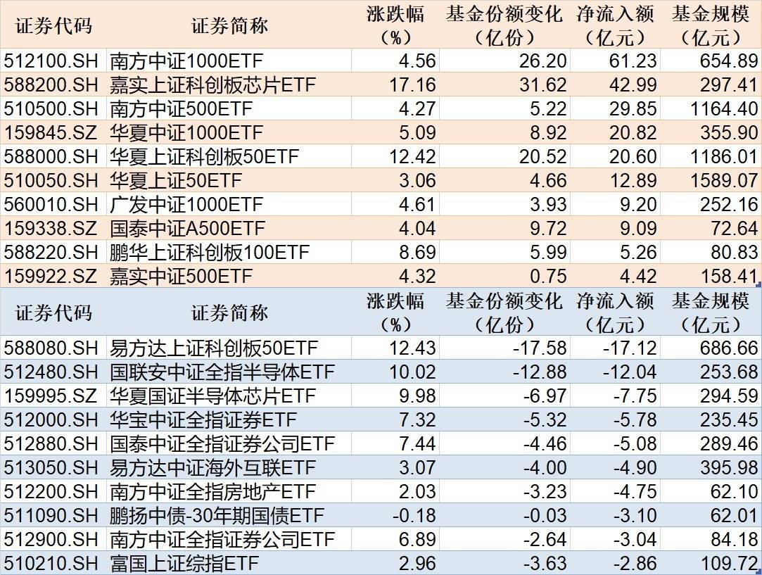 值得注意的是,三只规模较大的中证1000ETF合计净流入逾90亿元。