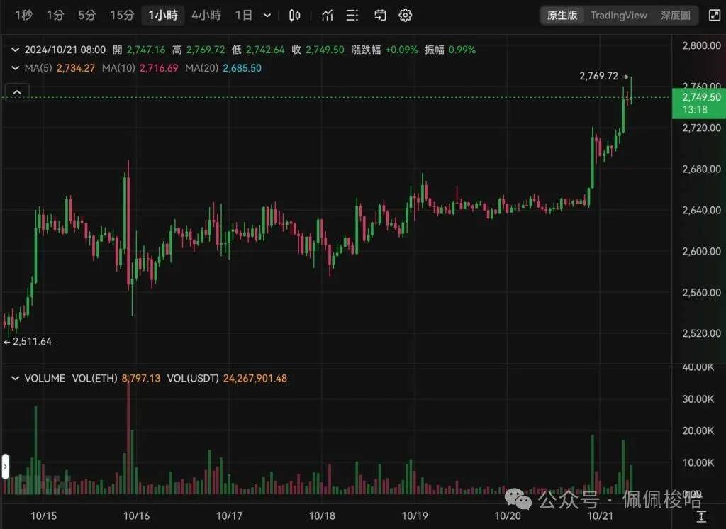 以太坊稍早最高也来到2,769 美元,创下接近两个月来的新高。