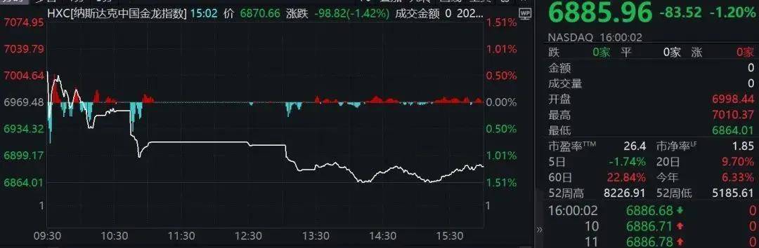 热门中概股多数下跌,纳斯达克中国金龙指数跌1.20%。拼多多跌超4%,阿里巴巴、百度跌超2%,爱奇艺、腾讯音乐、微博、网易跌超1%,京东、蔚来、哔哩哔哩小幅下跌。理想汽车涨超3%,小鹏汽车涨超1%。
