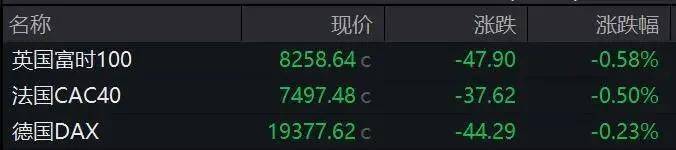 欧洲三大股指全线收跌。