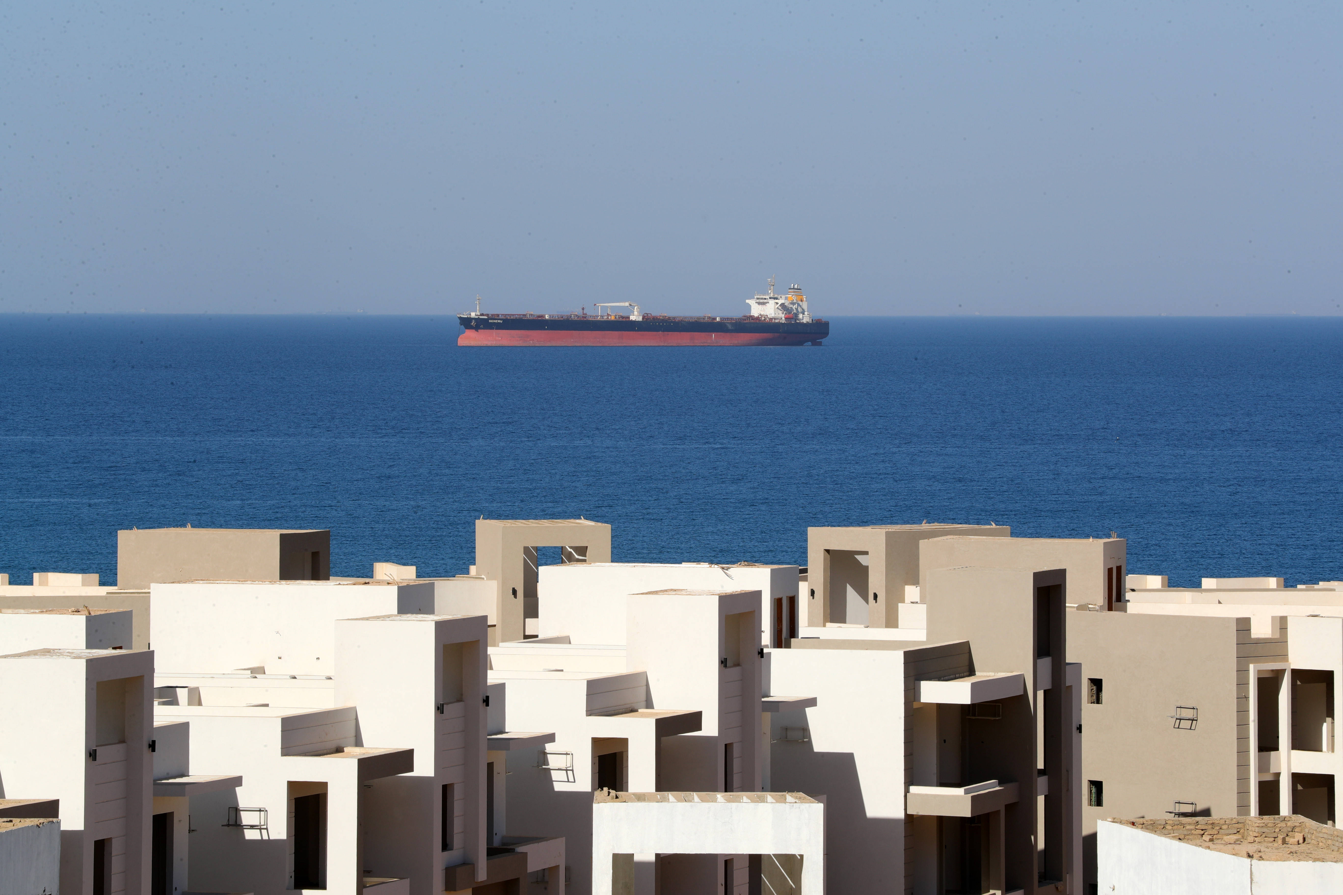 这是10月8日在埃及苏伊士湾拍摄的行驶中的船只。新华社记者隋先凯摄