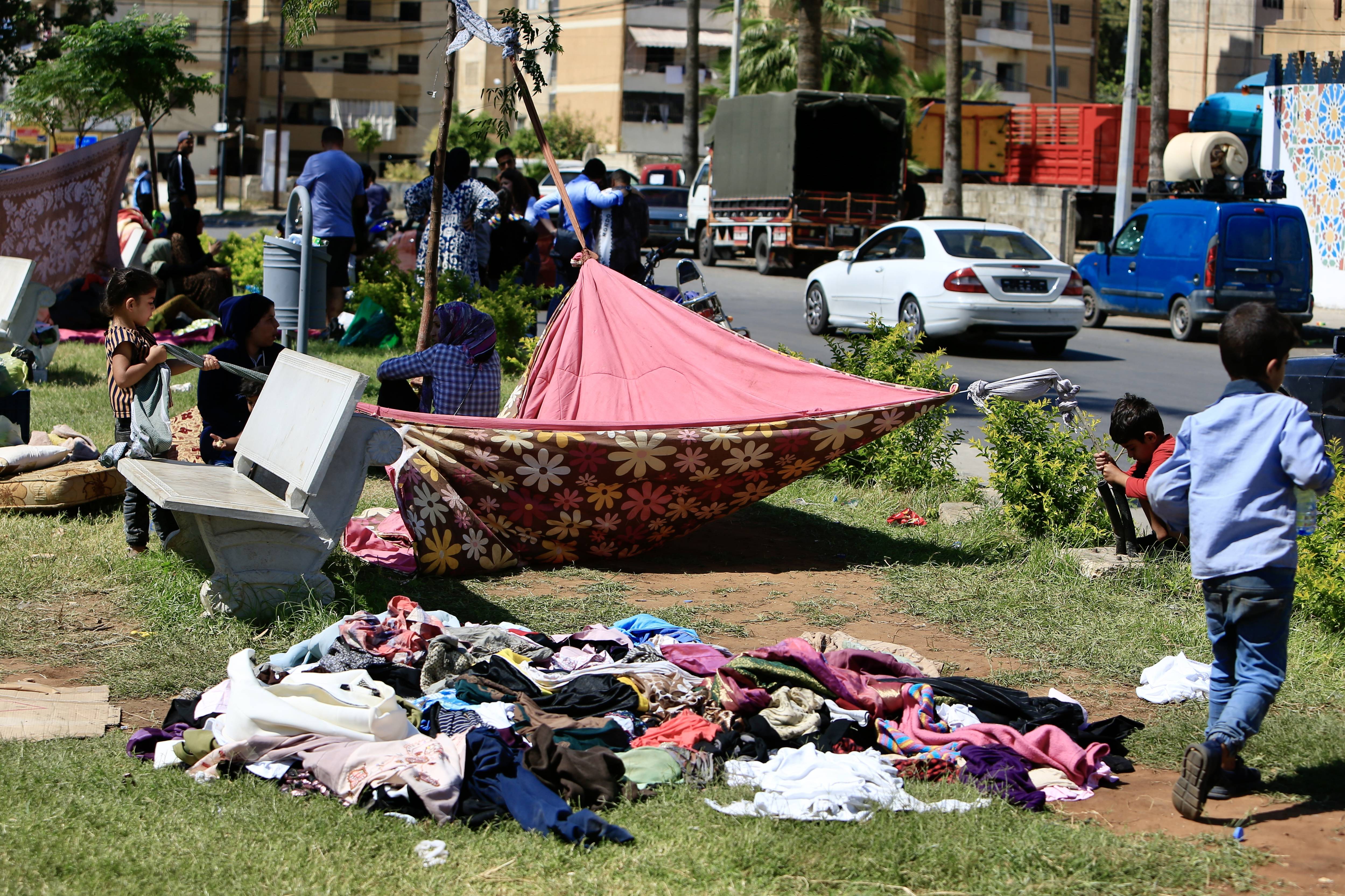 这是9月25日在黎巴嫩南部城市西顿拍摄的冲突中流离失所的民众。新华社发(阿里·哈希绍摄)