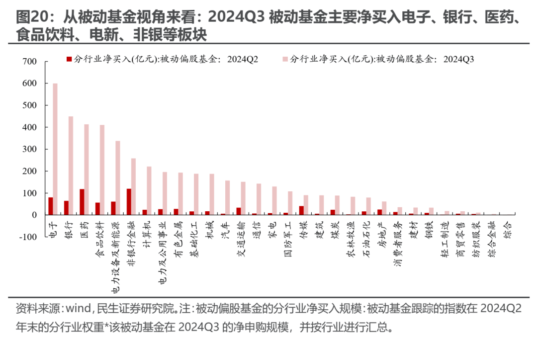 1.32024Q3被动偏股基金持有A股的规模首次超越主动偏股基金,2024Q2业绩靠前+2024Q3业绩不垫底的主动偏股基金更受负债端青睐