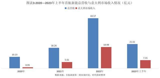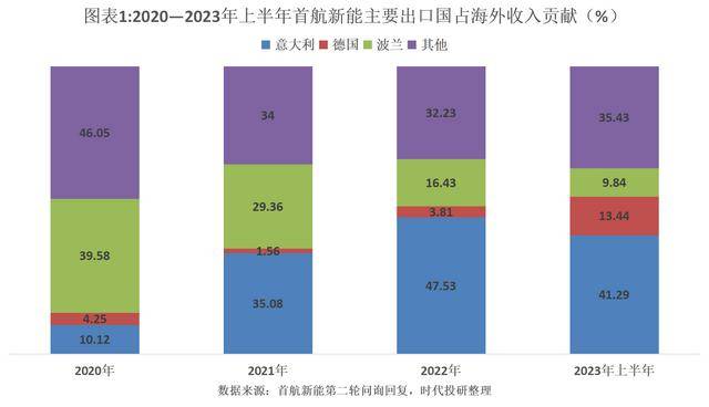 第二轮问询函回复显示,分地区来看,报告期各期,首航新能来自意大利的销售收入分别为0.95亿元、5.61亿元、18.98亿元、7.31亿元,占境外收入的比重分别为10.12%、35.08%、47.53%、41.29%。2021年意大利从其第四大海外市场一跃成为第一大海外市场。