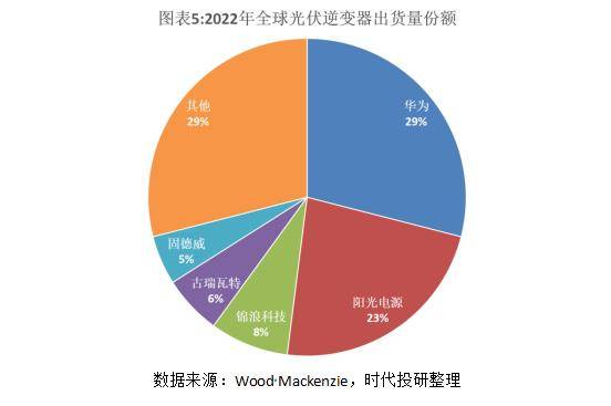 招股书显示,光伏逆变器行业的集中度较高,且呈上升趋势。根据Wood Mackenzie的统计数据及测算,全球光伏逆变器出货量排名前五名、前十名公司的市场占有率已分别从2013年度的40%、55%上升至2022年度的71%、86%。其中,2022年华为技术有限公司和阳光电源(300274.SZ)分别以29%、23%的市场份额稳居行业前二。