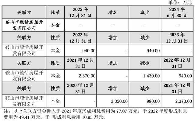 需特别说明的是,毓恬冠佳曾在2020年、2021年分别进行了1000万元和5000万元的分红。但与此同时,该公司还向关联方鞍山市毓恬房屋开发有限公司(下称“鞍山毓恬”)拆入资金3350万元,最终在2023年还清。