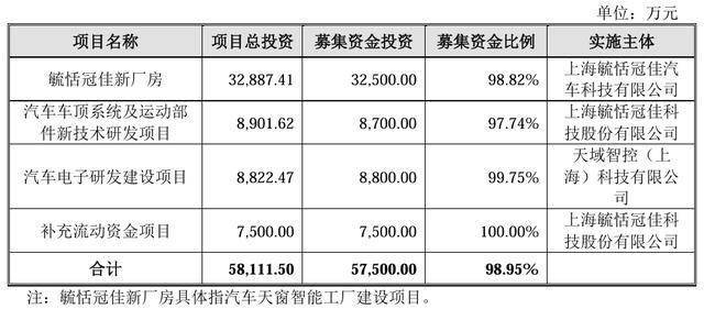 在此期间,毓恬冠佳就已经历了包括审核中心意见落实在内的三次问询。本次冲刺上市,毓恬冠佳计划募资5.75亿元,将用于毓恬冠佳新厂房、汽车电子研发建设项目、汽车车顶系统及运动部件新技术研发项目等。