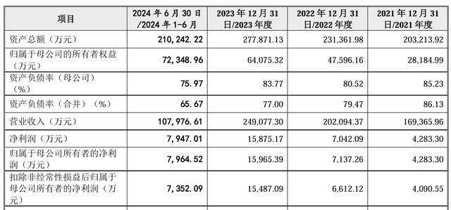 2021年、2022年、2023年度和2024年上半年(即“报告期”),毓恬冠佳的净利润分别为4283.30万元、7042.09万元、1.59亿元和7947.01万元,扣非后净利润分别为3972.98万元、6471.93万元、1.55亿元和7352.09万元。