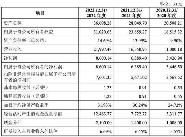 招股书显示,天助畅运2020年、2021年和2022年的营收分别为1.10亿元、1.66亿元和2.20亿元,净利润分别为3426.94万元、6389.40万元和8600.14万元,扣非后净利润分别为3567.50万元、5671.02万元和7601.35万元。