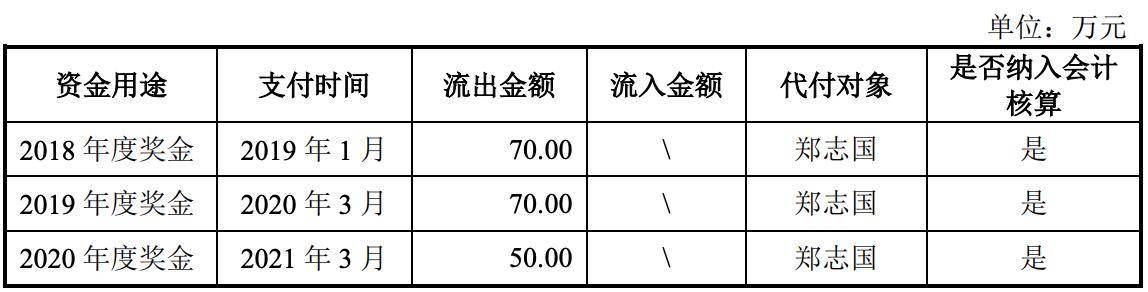 与此同时,2018、2019年、2020年,刘建曾代天助畅运无偿向郑志国支付年度奖金,金额分别为70.00万元、70.00万元、50.00万元,三年累计190万元,同样遭到了深圳证券交易所的问询。