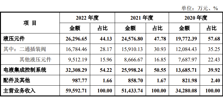 公司是一家专业从事液压元件及电液集成控制系统的研发、设计、生产和销售的高新技术企业。公司主要产品为二通插装阀、电液集成控制系统和其他液压元件,其他液压元件主要包括多路阀、充液阀、柱塞泵和液压缸等。