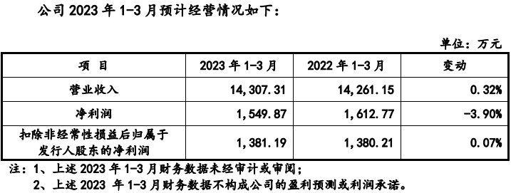 2022年末发出商品金额大幅下降,预示2023年一季度不大理想。固然,公司预计2023年一季度营收同比增长只有0.32%、扣非净利润同比增长只有0.07%。