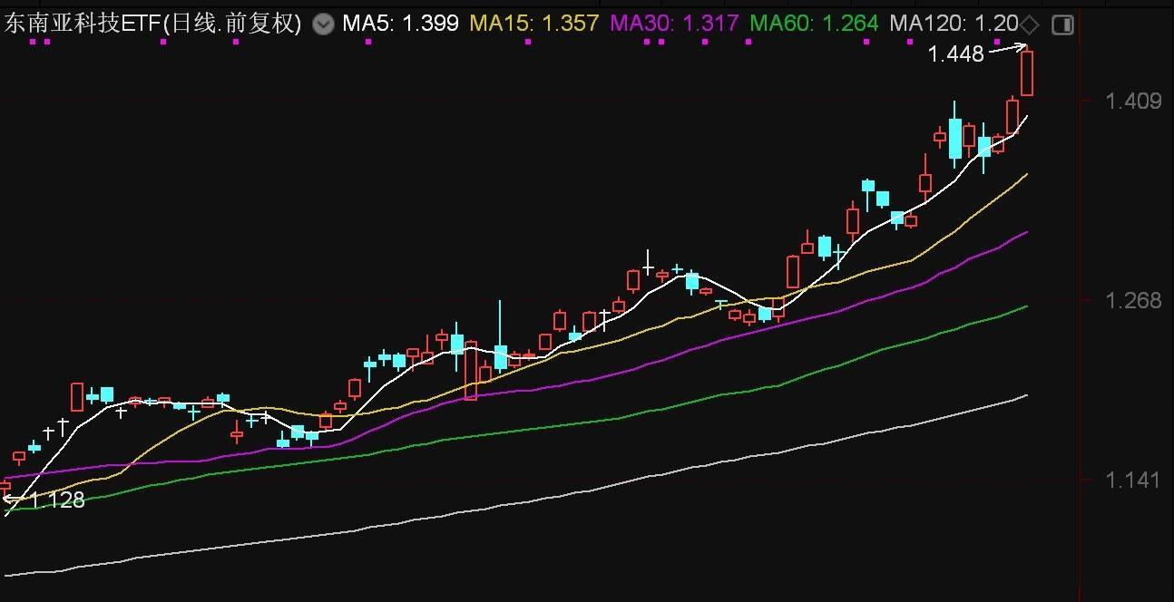 跨境ETF走强,标普消费ETF涨逾3%,东南亚科技ETF涨逾2%,盘中均创上市新高。