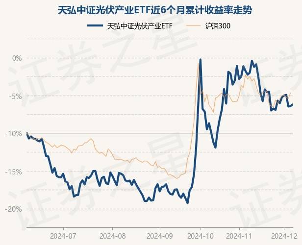 证券之星消息,12月6日,天弘中证光伏产业ETF最新单位净值为0.6965元,累计净值为0.6965元,较前一交易日上涨0.36%。历史数据显示该基金近1个月下跌7.66%,近3个月上涨27.14%,近6个月上涨7.58%,近1年下跌2.03%。该基金近6个月的累计收益率走势如下图: