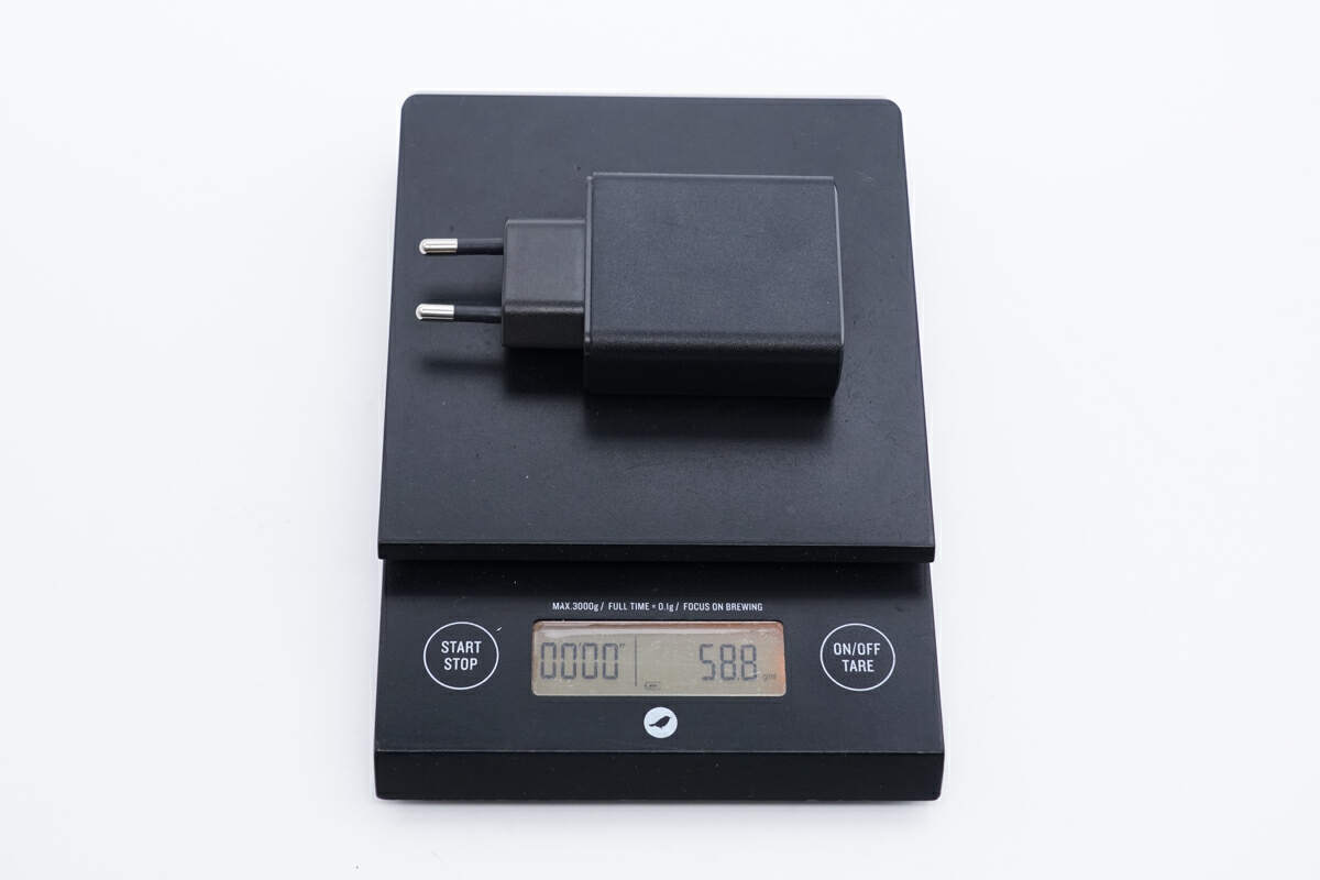 和苹果5W充电器放在一起对比,这款的体积要大一些。