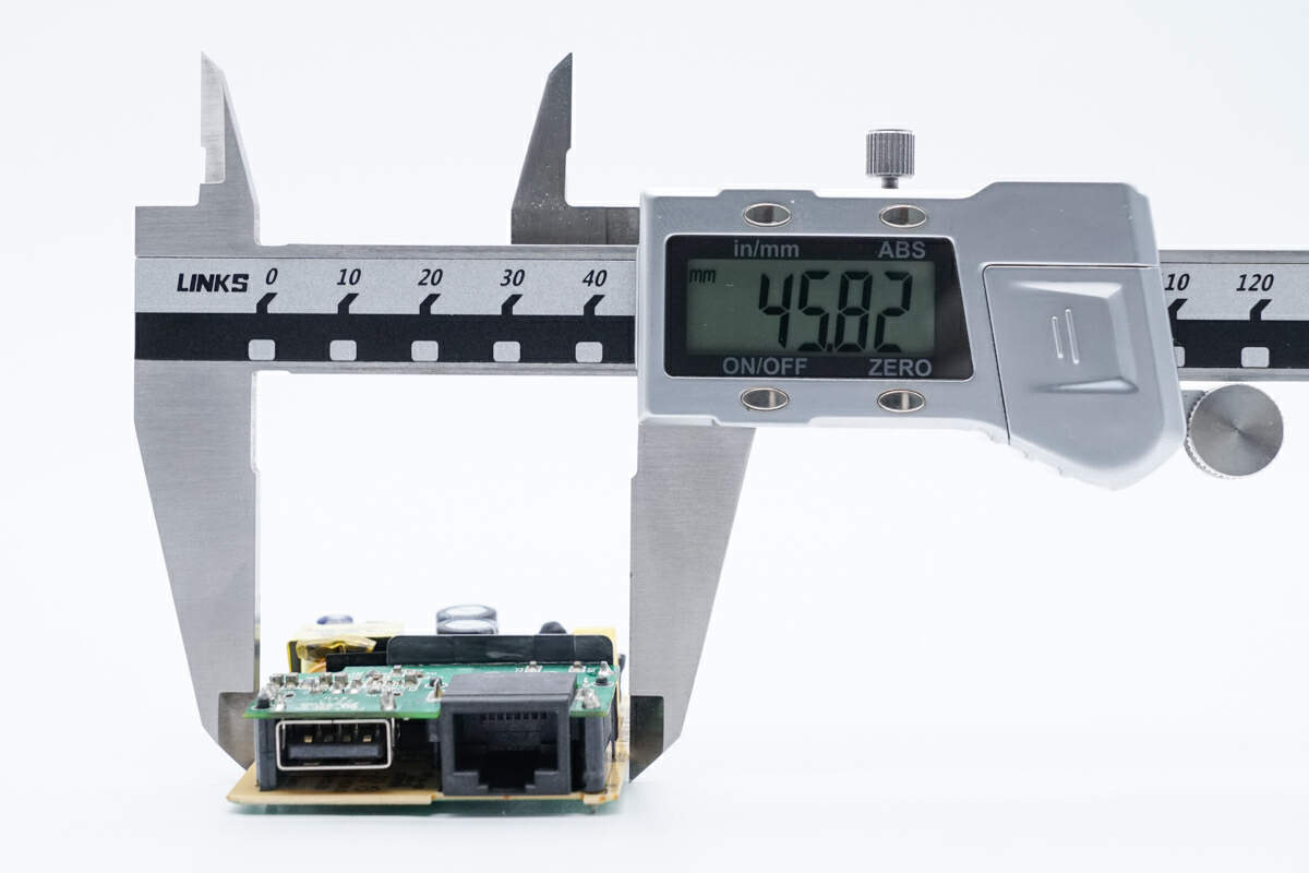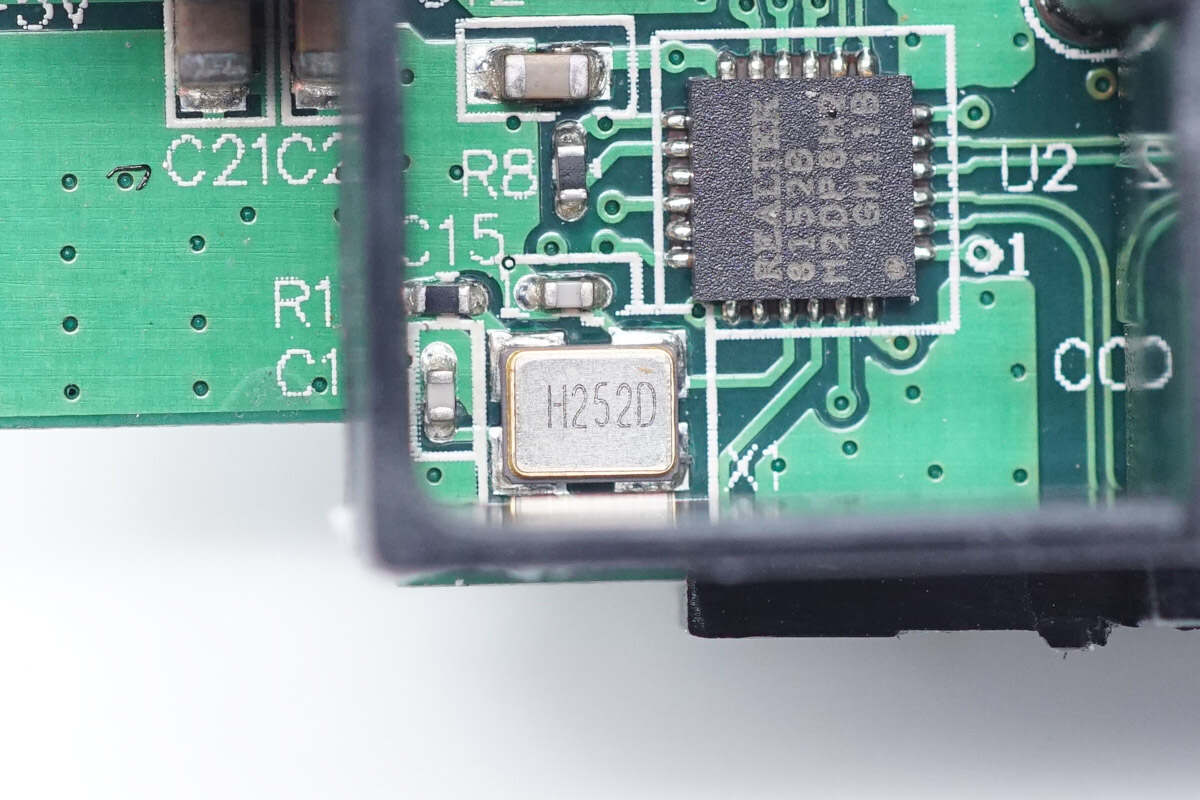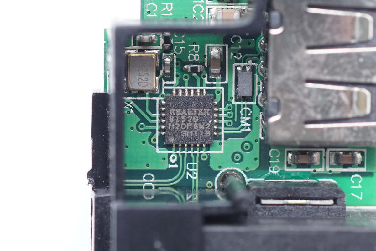 小板上的以太网转换器来自Realtek瑞昱半导体,型号RTL8152B,支持10/100M网络连接,支持USB2.0/1.1,支持网络唤醒,支持GPIO控制功能,采用QFN-24封装。