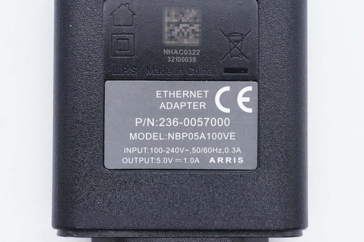 ARRIS以太网适配器采用PC阻燃材质黑色塑料壳,表面磨砂处理抗指纹,两端边缘倒角设计。