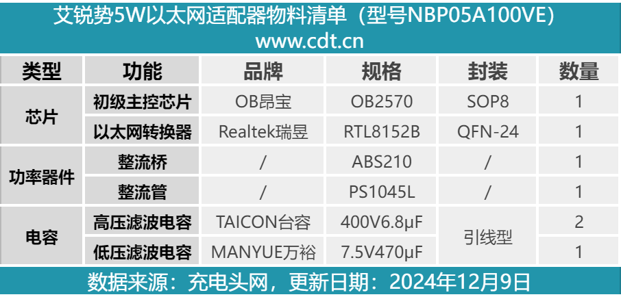 最后附上艾锐势5W以太网适配器的核心器件清单,方便大家查阅。
