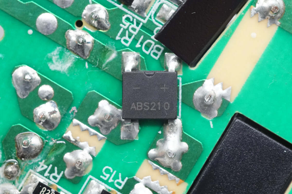 主板背面设有整流桥、开关电源主控芯片以及肖特基整流管。