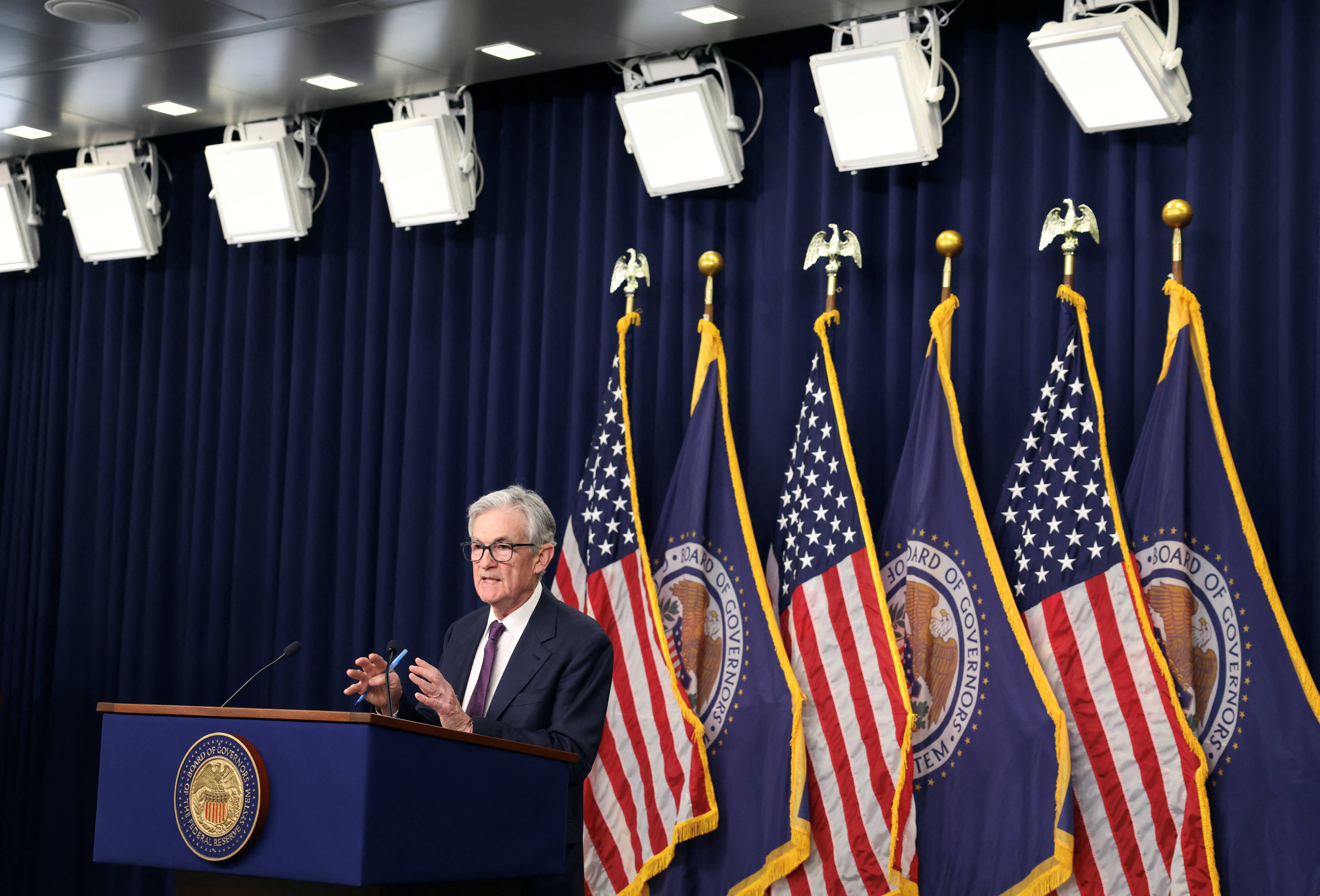 12月18日,美国联邦储备委员会主席杰罗姆·鲍威尔在华盛顿出席记者会。新华社发