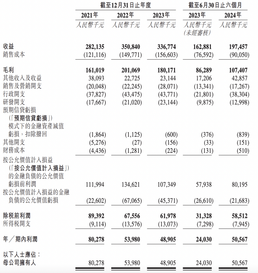 业绩方面,2021年-2023年及2024年上半年,泰德医药收益分别为2.82亿元、3.51亿元、3.37亿元及1.97亿元,期内利润分别为8027.8万元、5398万元、4890.5万元、5056.7万元。2024年上半年,公司营收、净利润分别同比增长21.23%、110.43%。